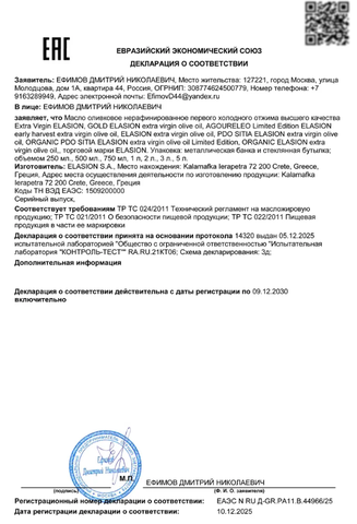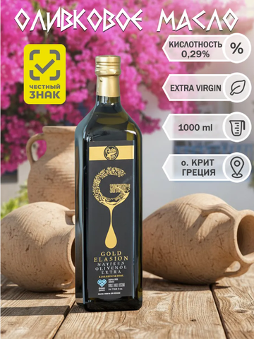 Греческое оливковое масло Gold Elasion Extra Virgin объёмом 1 литр — производится на острове Крит. Оливковое масло extra virgin - премиальное масло первого холодного отжима производится из оливок сорта Коронейки, выращенных под солнцем Крита. Уникальный микроклимат острова и традиционные методы, включая бережный ручной сбор и отжим при температуре не выше 27°C, позволяют сохранить всю натуральную пользу и аутентичный характер продукта.