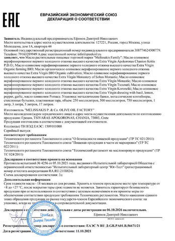 Новый урожай 2025/2026. Масло оливковое Extra Virgin Apokoronas Chanion Kritis охраняемого обозначения происхождения PDO. PDO и PGI нельзя подделать, они защищены от мошенничества и являются единственным безопасным способом правильно понять, откуда взялось ваше оливковое масло. Каждое такое растительное масло имеет сертификат AgroCert, выданный министерством сельского хозяйства Греции. На банке должен быть желто-красный значок PDO - protected designation of origin, который означает, что продукт был целиком от начала и до конца изготовлен в одном регионе, в данном случае в регионе Apokoronas в провинции Ханья. Апокоронас простирается от предгорий Белых гор на север до побережья, на широкой равнине с пологими холмами. Местность очень зеленая и плодородная, что необычно для скалистого Крита. Масло оливковое extra virgin производится механическим путем при температуре не выше 27 С из оливок Коронейки. Сертификат смотрите в фото товара. Нерафинированное оливковое масло полезно для здоровья большим содержанием полифенолов, природных антиоксидантов. Полифенолы придают маслу характерную горчинку. Используйте это оливковое масло для салатов, соусов, маринадов. Кушайте как греки просто с хлебушком. Также на этом масле можно запекать рыбу, курицу, овощи. Ученые доказали, что оливковое масло холодного отжима бережёт ваше здоровье, борется с вредным холестерином, очищает сосуды, уменьшает риск сердечно-сосудистых заболеваний, является мощной профилактикой раковых заболеваний, уменьшает хронические воспалительные процессы в организме, улучшают состояние волос, кожи, ногтей. Масло холодного отжима пищевое - полезный продукт не только для взрослых, но и для детей: укрепляет иммунитет в период болезней и простуд. Это масло мы привозим напрямую с фабрики из Греции с острова Крит. Кислотность до 0,4%. Свежий урожай.