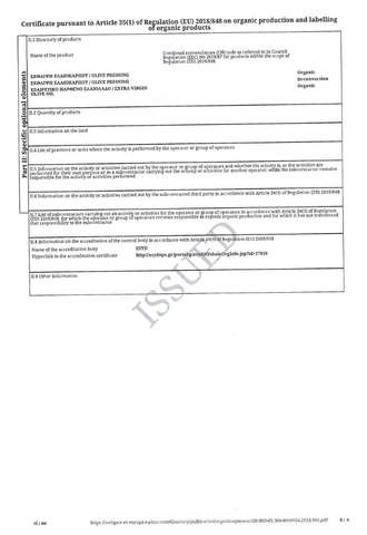 Одним из устойчивых к болезням сортов - является сорт Коронейки, который отличается качеством, вкусом, урожайностью и высоким содержанием полифенолов. Помимо классического вкуса оливкового масла extra virgin, вы приобретаете максимальную безопасность и здоровье. Органическое масло имеет сертификат, на бутылке вы найдете значок отличия - GR BIO, а в наименовании должно быть указано ORGANIC. Нерафинированное оливковое масло имеет характерную горчинку, это признак натуральности масла. Лучше всего использовать оливковое масло для салатов, для маринадов, соусов, можно запекать на нём рыбу, птицу и овощи, а можно просто кушать с любимым хлебом, обмакнув его в масло. Органическое оливковое масло придаст блюдам средиземноморский вкус. У нас в продаже масло оливковое из Греции, остров Крит, регион сбора оливок и производство - Апокоронас Ханья. Перед отгрузкой все бутылки проверяются на протекание и другие дефекты. Кислотность до 0,4%. Сертификат смотрите в фото товара.